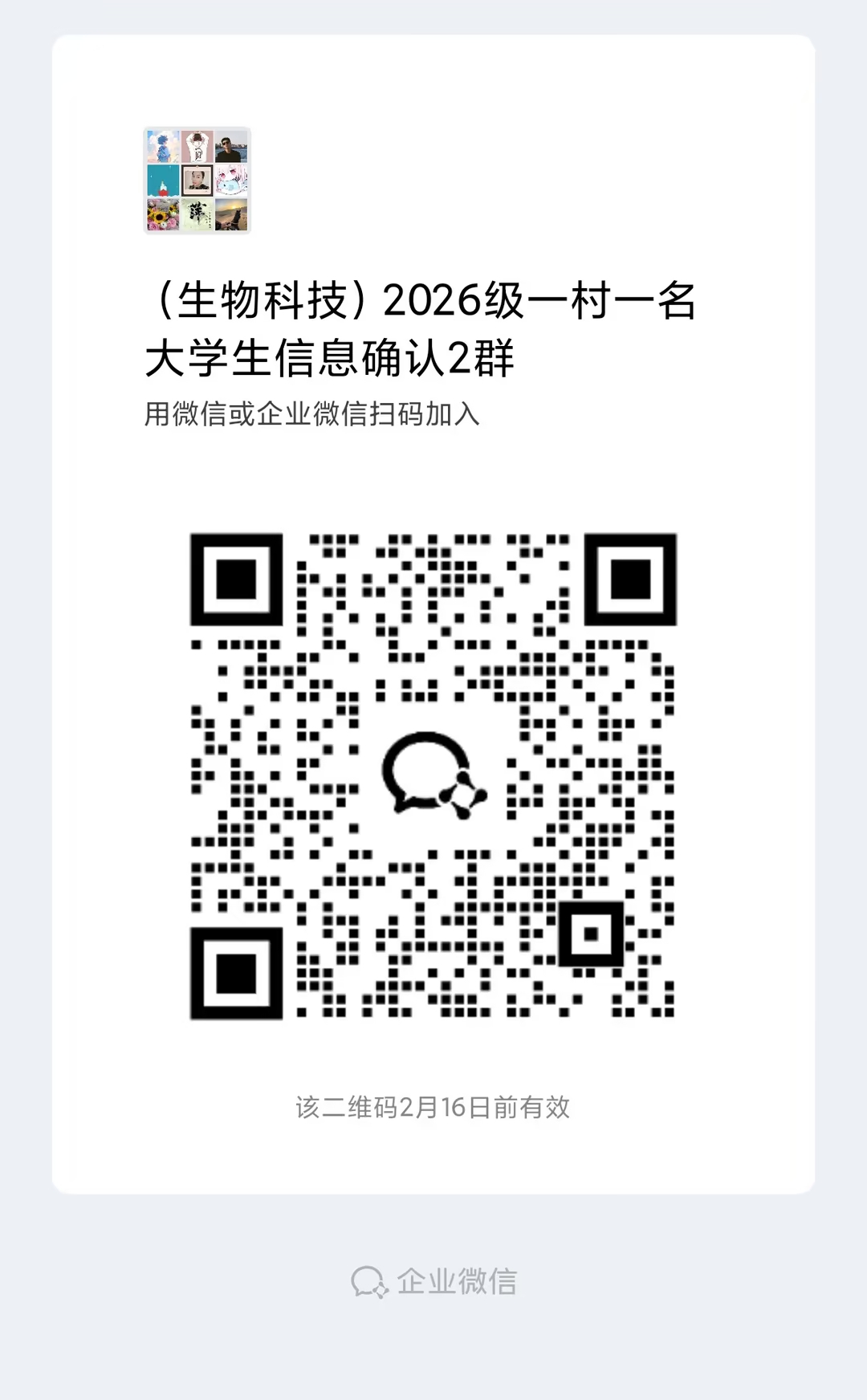 1.2026级一村一名大学生信息确认群: